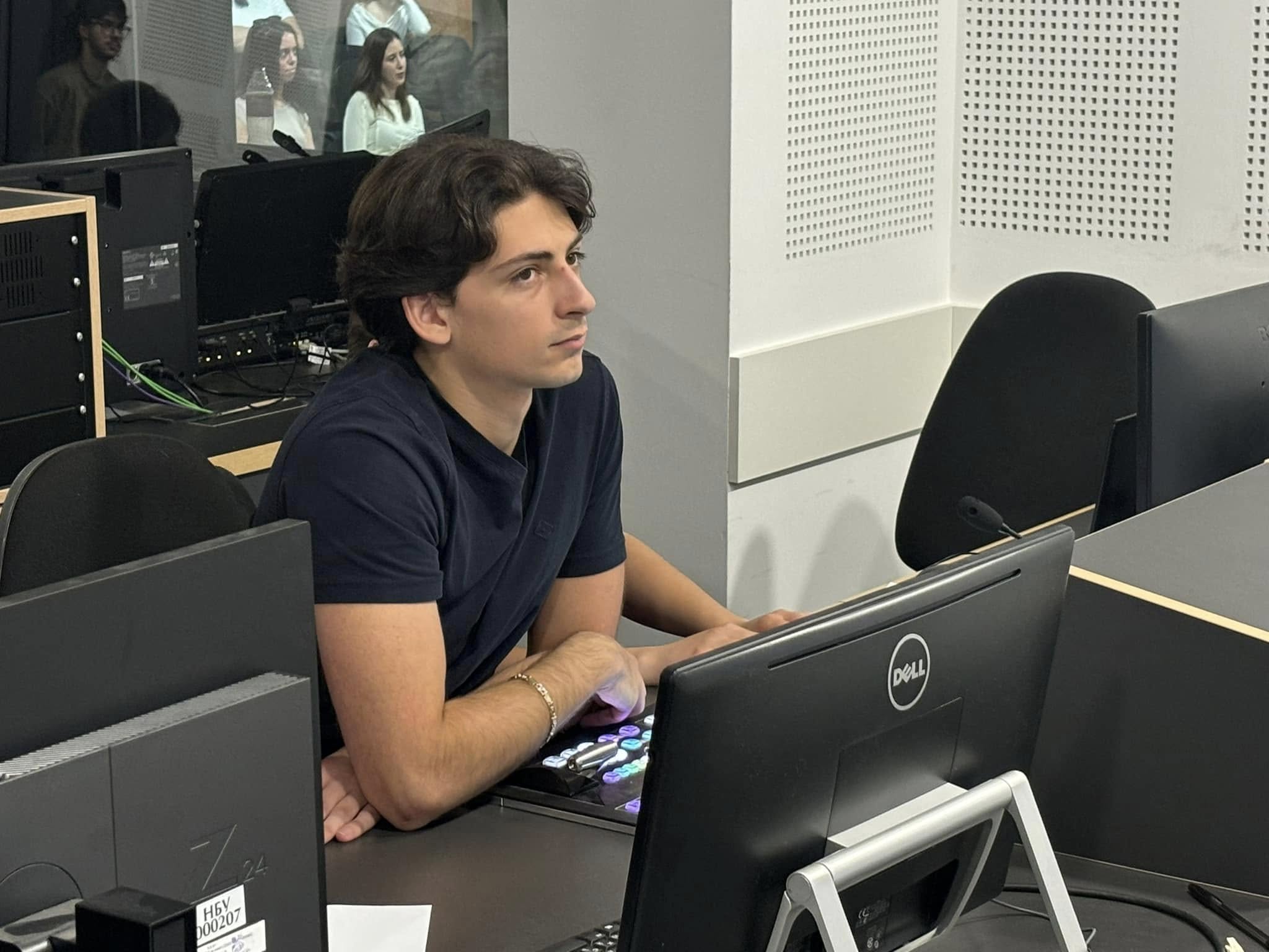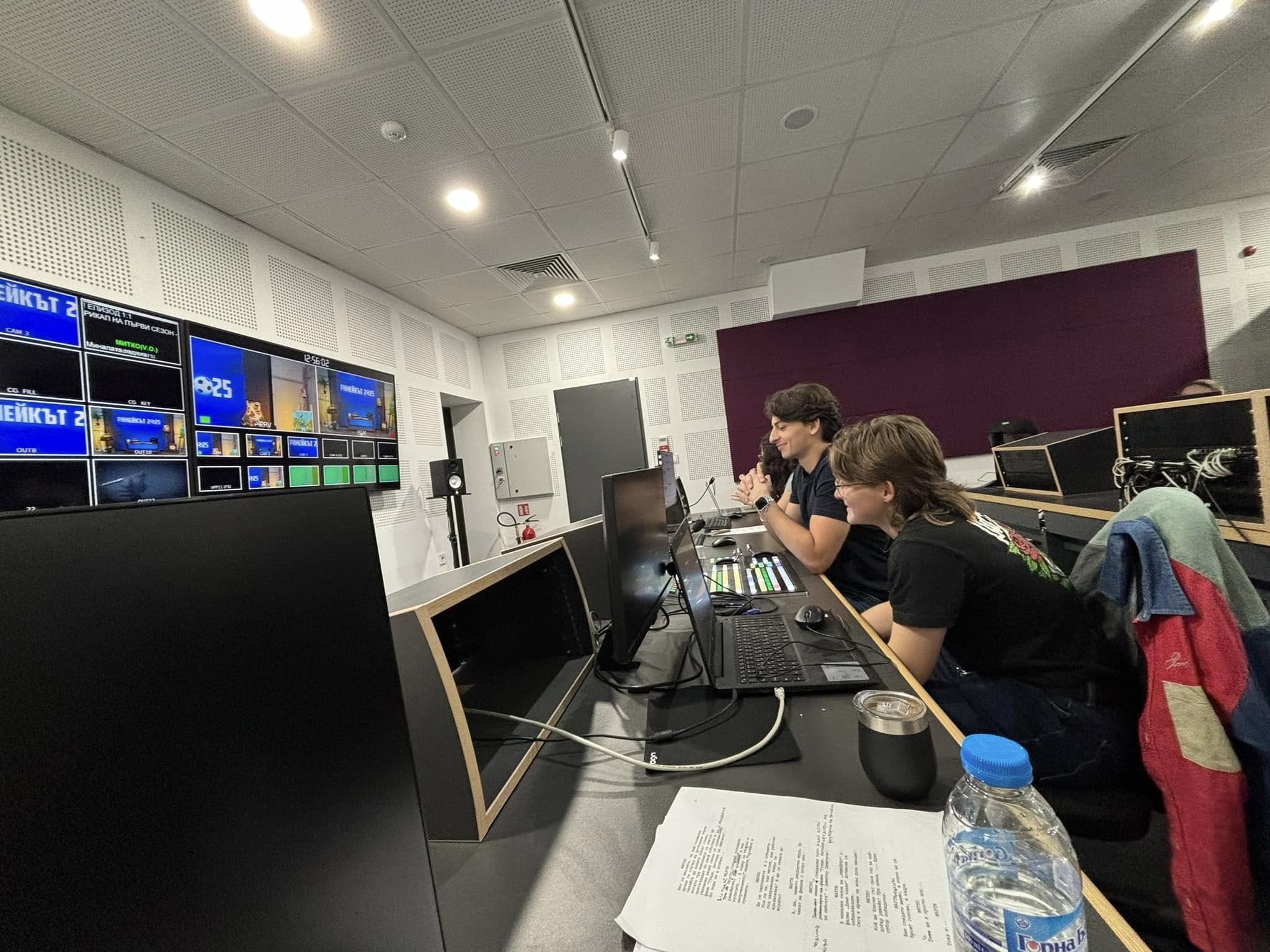Имах ясна посока и конкретни идеи. Най–голямото предизвикателство дойде с организацията. Разпределянето на „тв екипа“ по групи, синхронизирането на графици и роли и изграждането на работещи групи хора, които не познавах добре, изискваше бързи и точни решения. Огромна помощ ми оказа режисьорът от миналата година – Микаела Стойнева, която сподели работещи подходи за организация. Подкрепата и насоките на Боби Димова и Радо Бадов също бяха ключови, за да запазим фокуса си и да не се изгубим в чисто технически задачи. Снимачните дни, особено тези в студиото, си бяха напрегнати. Времето ни притискаше, трябваше да се действа бързо и нямаше много поле за грешки. Но въпреки напрежението, почти не е имало момент, в които да се изнервим сериозно. Това спокойствие се пренесе и в постпродукцията. Вече имах опит с главния монтажист – Калоян Златев, бяхме на една вълна още преди да седнем пред компютъра. Той е изключително добър в това, което прави, и обсъждахме всичко в движение. Когато дойде време за работа, Калоян вече знаеше каква е нашата цел и монтажа станаха бързо и качествено. Финалът на това приключение дойде с прожекцията в киносалона. Залата беше пълна със студенти и преподаватели, но най–голямата изненада за нас беше присъствието на режисьора и оператора на „Гунди – Легенда за любовта“ – Димитър Димитров и Борис Славков. Да гледаме риалитито заедно с тях и да видим реакциите им на живо беше неочаквано и много силно преживяване. Ако трябва да тегля чертата, най–ценното за мен от целия този проект не са само техническите умения и опит, а това, че имах възможността да опозная колегите, с които работя последните няколко години. Основната ни цел беше епизодите да бъдат интересни и развлекателни. Надявам се, че сме успели да постигнем това и че зрителите ще се забавляват.
