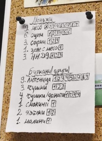 Както виждаме, 9 буркана с месо, 6 супи, 3 сарми, 1 зеле с месо, 3 ННДЯ (никога няма да